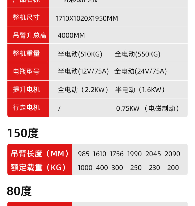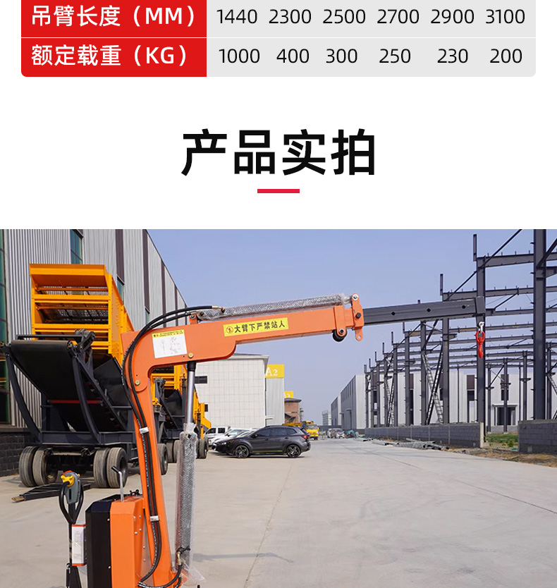 电动升降,一键升降收缩,吊臂可升至高度4米。