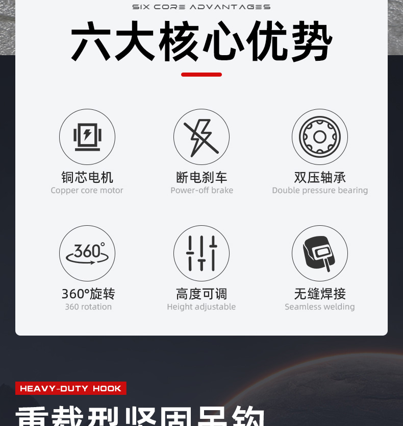电动行走,电机驱动一键前进后退使用方便,轻松移动可以拉着走起重吊机。